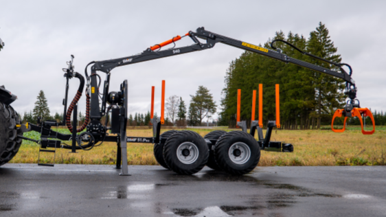 - Chargeuse à bois 540 avec une portée totale de 14 pieds + extension de 36” rétractable pour un total de 17’6”